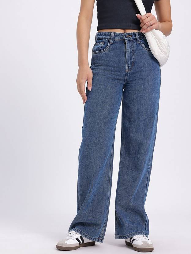Women Loose Fit High Rise Blue Jeans
