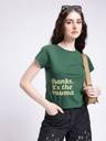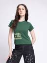 Women Printed Round Neck Pure Cotton Green T-Shirt