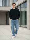 Glitchez Self Design Round Neck Casual Men Black Sweater