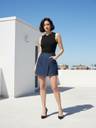 Upgrade your wardrobe with this chic denim women's mini skort, blending the elegance of a skirt with the comfort of shorts. Designed for versatility, it features a high-waist fit, soft stretch denim, and a stylish asymmetric front. Perfect for casual outings, brunch, or a night out—effortlessly stylish and practical! The model (height 5'7) is wearing a size M.