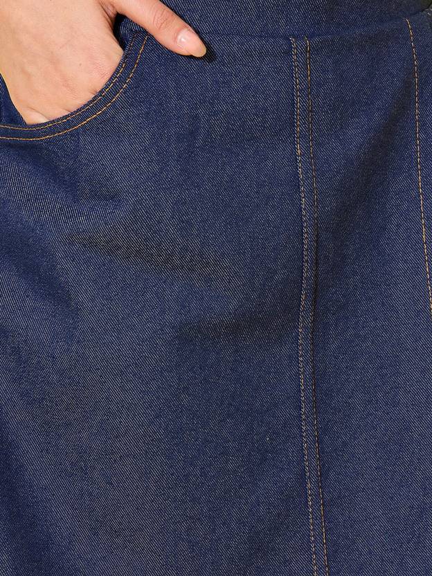 Glitchez Dark Blue High Waist Front Skirt Back Shorts Denim Women’s Mini Skort