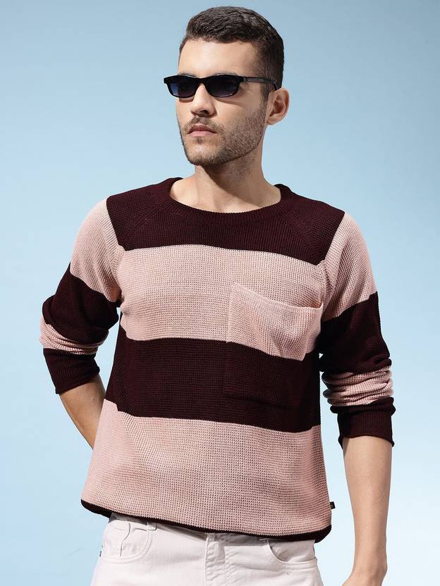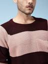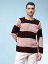 Glitchez Striped Round Neck Casual Men Pink Sweater