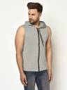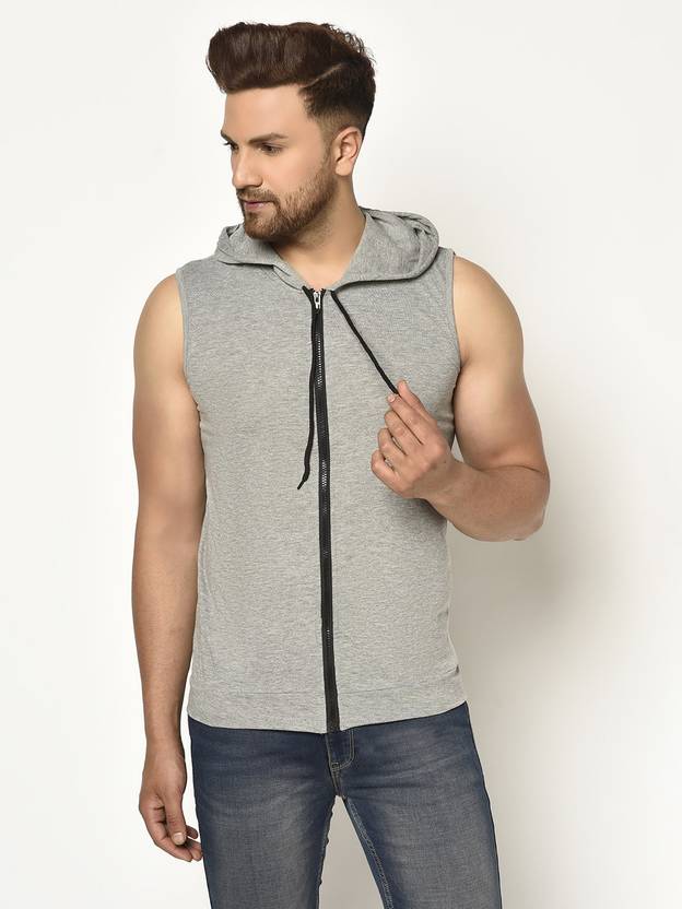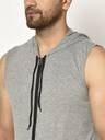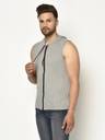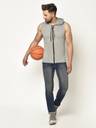 GLITO Solid Men Hooded Neck Grey T-Shirt