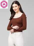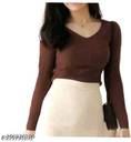 glitsy Casual Solid Women Brown Top