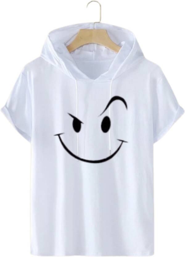 Name : Bartus Smiley Printed Half Sleeve Hoodie for mens