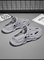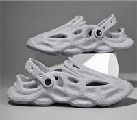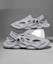 Owing to their solid pattern, multiple cut-outs, and textured surface, these men's sandals offer a stylish yet practical design. The solid pattern provides a sleek look, while the multiple cut-outs ensure excellent breathability, keeping your feet cool. Furthermore, the textured surface adds a layer of grip, preventing slips and enhancing safety. The wavy sole design adds to the visual appeal and provides cushioning, making each step supported.