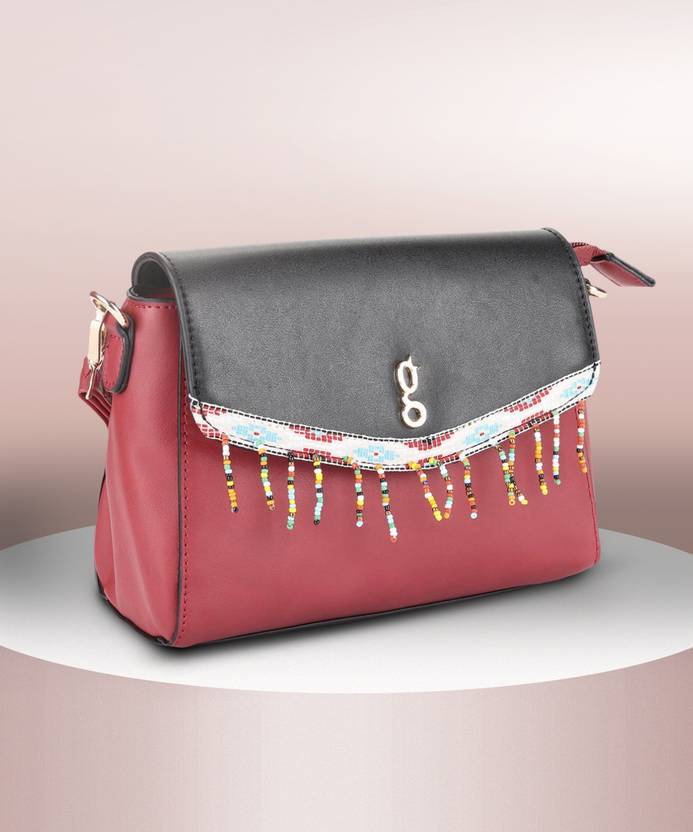 GLOBAL DESI Black, Maroon Sling Bag Y
