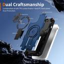 {GLOBAL NOMAD} -This rugged and stylish phone case offers superior protection and functionality with a dual-layer design featuring a hard polycarbonate shell and shock-absorbent TPU lining. Its standout feature is a 360° rotatable ring holder with a turbine-inspired design that doubles as a secure grip and hands-free kickstand. The built-in metal plate allows for seamless magnetic car mount compatibility, making it ideal for safe, convenient use while driving. Raised edges around the camera and screen offer added protection against scratches and impact, while reinforced corners with air-cushion technology absorb shocks from accidental drops. The case includes precise cutouts and responsive button covers, ensuring full accessibility without removing it. Finished in a bold matte blue with contrasting black accents, this case combines modern aesthetics with rugged durability—perfect for users seeking both protection and everyday utility.