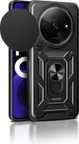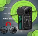 {GLOBAL NOMAD} The case is designed for durability and utility, featuring a built-in kickstand and a sliding cover over the camera lenses for extra protection. The design includes textured surfaces for a secure grip, reinforced corners for shock absorption, and precise cutouts for buttons and ports. {Built-in Kickstand} Allows for hands-free viewing, perfect for watching videos or video calls, Combines functionality with a modern, rugged look.