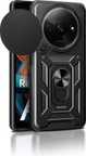 {GLOBAL NOMAD} The case is designed for durability and utility, featuring a built-in kickstand and a sliding cover over the camera lenses for extra protection. The design includes textured surfaces for a secure grip, reinforced corners for shock absorption, and precise cutouts for buttons and ports. {Built-in Kickstand} Allows for hands-free viewing, perfect for watching videos or video calls, Combines functionality with a modern, rugged look.