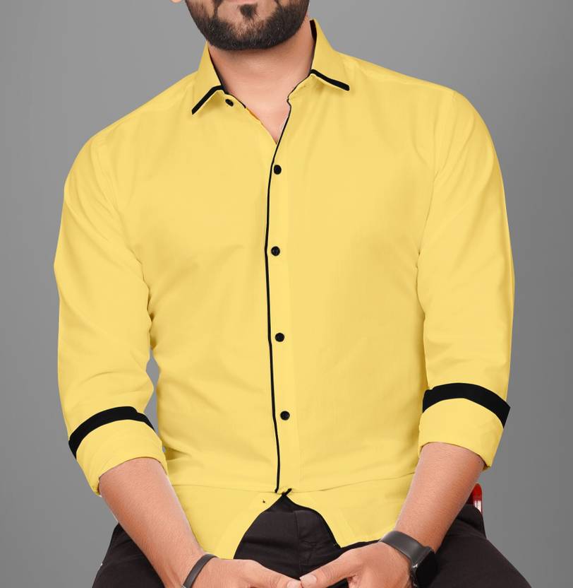 GLOBAL NOMAD Men Solid Casual Yellow Shirt