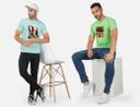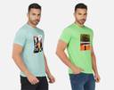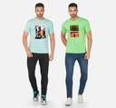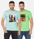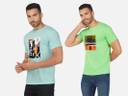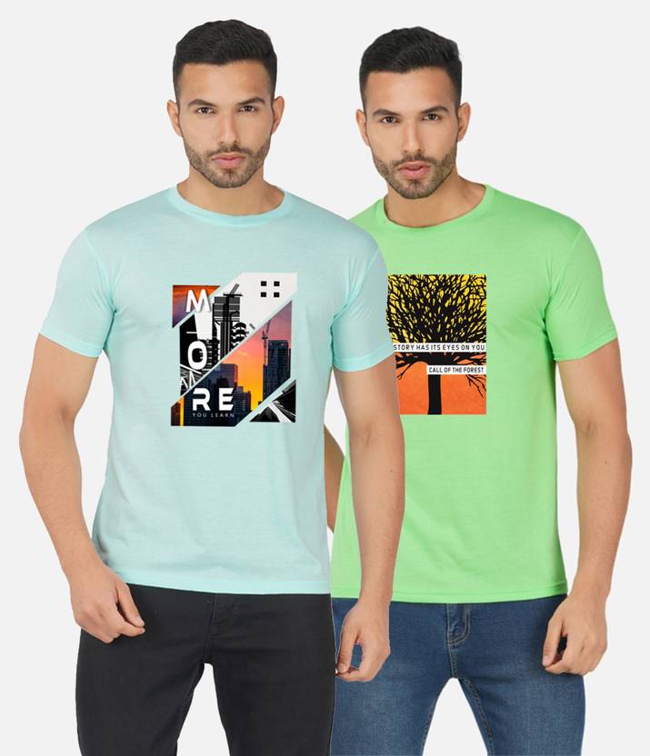 GLOBAL NOMAD Printed Men Round Neck Light Blue, Light Green T-Shirt