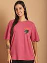 GLOBAL NOMAD Women Printed Round Neck Pure Cotton Pink T-Shirt