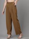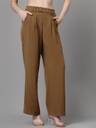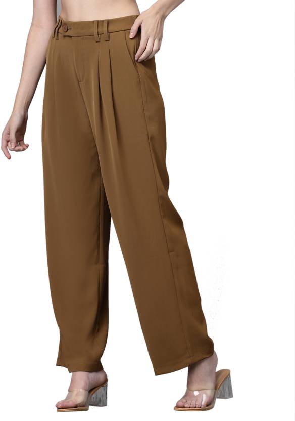 GLOBAL REPUBLIC Trouser for Women Stretchable Brown Formal Pant for Office Wear with Women Regular Fit Brown Polyester Trousers