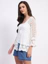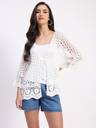 GLOBAL REPUBLIC Women Crochet Full Sleeve White Shrug