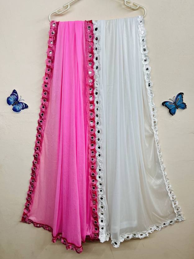LYCRA FOUR SIDE MIRROR LACE FANCY DUPATTA'S PACKED OF 02 PICE SET RED AND WHITE