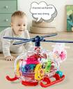 This Transparent Children's Toy Helicopter Can see the gears inside, helping children understand the mechanical concept early. Improve children's observation skills. Transparent Mechanical Gear Toy Helicopter with Clear shell, and you can see through the rotating gears in it. This toy Helicopter uses a transparent body design, you can see the gears and simple letters & numbers inside, helping children understand the mechanical concept earlier and improve children's observation ability. Turn on the light and music switch, the Bus will emit attractive cool lights, and play dynamic music to make the baby follow him. This Transparent Children's Toy Helicopter Can see the gears inside, helping children understand the mechanical concept early. Perfect choice as baby toys 6 to 12-18 months, birthday, Diwali, Holi, New Year, Christmas, and Other occasion gifts for 1 2 3-year-old boys, girls, preschoolers, and toddlers. Just imagine your little kid?s face playing with his new infant toys. That is priceless.
