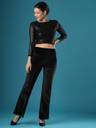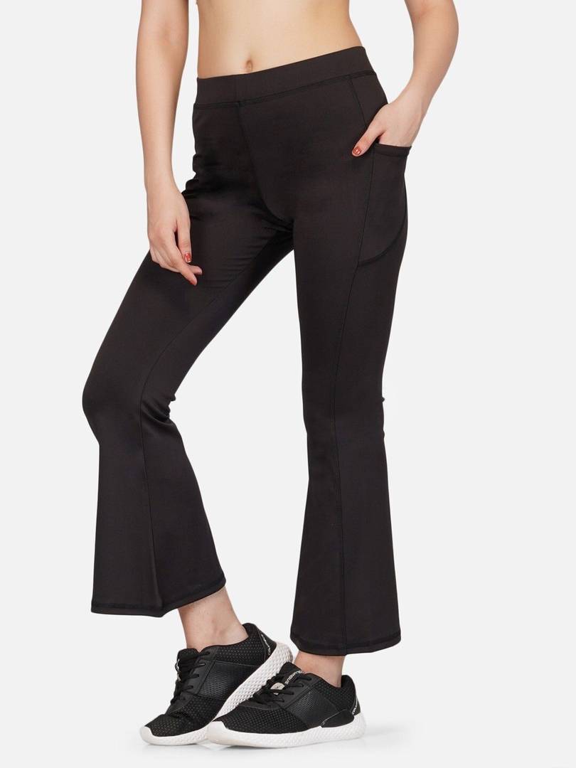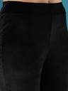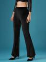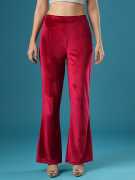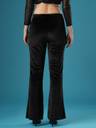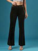 Indulge in the elegance of the Globus Women Black Velvet Mid Rise Stretchable Slim Fit Flared Treggings. These treggings feature a flattering slim fit and a flared hem, crafted from a stretchable polyester fabric. The classic black velvet adds sophistication, making them perfect for a night out or an elegant evening event.