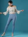 Enjoy a blend of comfort and style with the Globus Women Denim Blue Color Mid Rise Stretchable Skinny Fit Treggings. These treggings are crafted from a Rayon Poly Spandex blend, offering a comfortable skinny fit. The classic denim blue color makes them a versatile addition to your casual wardrobe.