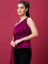 Make a statement in our Wine Solid Party Top. Crafted from polyester, this one-shoulder top features waist tie-ups and a sleeveless, strappy design. The lustrous satin fabric adds a touch of glamour, making it perfect for special occasions.