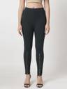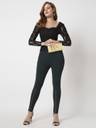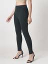 These dark olive treggings combine style and functionality with their stretchy viscose lycra fabric and skinny fit design. The subtle zipper accents and slip-on closure make them perfect for a streamlined, professional look. Their woven texture enhances their formal appeal, making them a go-to piece for the office.