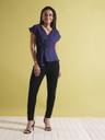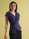 Elevate your office style with Navy Blue Wrap Workwear Top. Designed with a flattering wrap V-neck and extended sleeves, this top features a stylish twisted detail at the waist, enhancing its structured and feminine silhouette. The soft navy blue color adds a touch of elegance, making it the perfect choice for professional settings or business events.