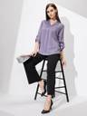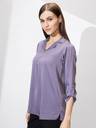 Stay polished and professional with this mauve satin shirt-style workwear top. Designed with a cuban collar and roll-up sleeves, it combines elegance with functionality. The woven satin material enhances its sheen, making it a refined choice for office meetings or formal gatherings.