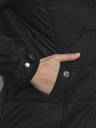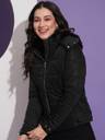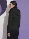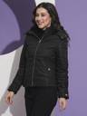 This black puffer jacket with a detachable hood combines functionality and style. Its mock neck, long sleeves, and waist-length fit offer cozy protection, while the insulator fabric ensures warmth. Front pockets and a curved hemline complete this versatile winter essential.