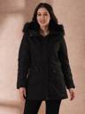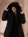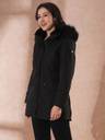 Elevate your winter wardrobe with this black puffer jacket featuring a detachable faux fur hood and two flap pockets for added convenience. Crafted from high-quality polyester, it combines warmth and style effortlessly. The mock neck and zip closure provide a sophisticated touch, while the curved hemline enhances your silhouette. Perfect for casual outings or evening events, this jacket offers both function and fashion. Dry clean only to preserve its elegant look, making it a must-have for the colder months