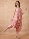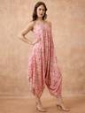 Stand out in the Globus Women Multi Fusion Jumpsuit. Featuring a vibrant multi-colored abstract print, this jumpsuit combines a flattering V-neckline with strappy shoulders for a chic touch. The waist tie-up offers an adjustable fit, while the harem style adds a relaxed, contemporary vibe. Made from soft, breathable fabric, this fusion jumpsuit is perfect for those seeking comfort without compromising on style.