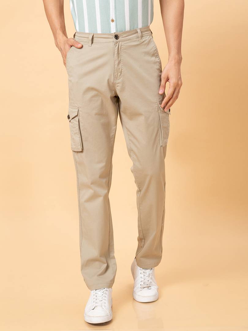 Maitain your style and swag through the day with the comforts of this nice pair of beige cargo trousers from the latest collection of Globus. Finely tailored in superior grade cotton for softness and excellent adaptation that makes them an easy wear, their modern slim fit silhouette assigns them a snug, dynamic flavor. Pair them with a contrast polo t-shirt for a nifty look.