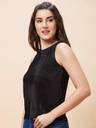 Globus presents these fashionable and classy Women Black Solid Round Neck Sleeveless Pleated Party Top. Made with superior quality skin friendly Polyester fabric for comfort of wearing. The Party Top are sure to keep you looking stylish and feeling comfortable through the day. So go ahead, stand apart from the crowd and create your own trends.