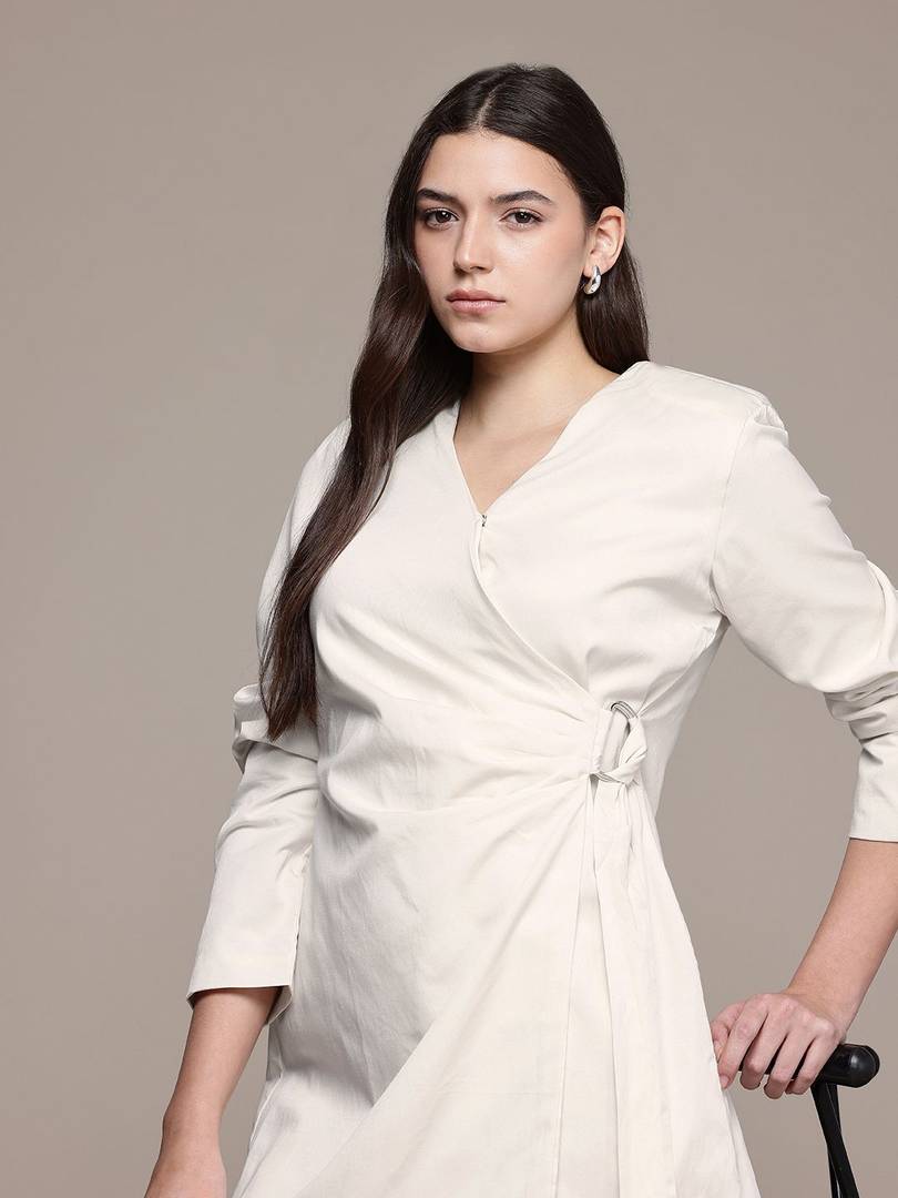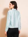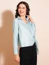Add sophistication to your work wardrobe with the Blue Satin Wrap Top. Designed with a shirt collar and cuffed sleeves, this top features a luxurious satin fabric and unique twisted surface detailing. Perfect for making a polished impression in professional settings.