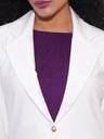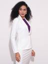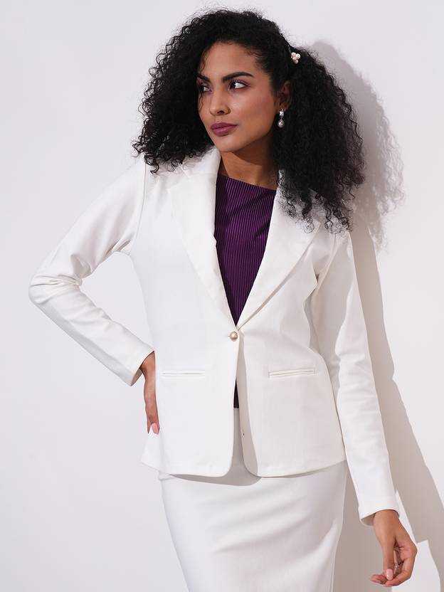 This off-white blazer jacket is a versatile workwear essential with its notch lapel and curved hem that bring a sleek finish. The open-front silhouette offers a relaxed yet structured fit, while the long sleeves add a touch of elegance to your everyday office look. Crafted from a breathable rayon-poly-spandex blend, it provides ease of movement. Two functional pockets complete this formal must-have, making it perfect for layering over a blouse and tailored pants.