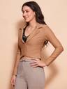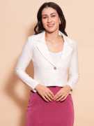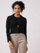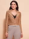 Introduce a touch of sophistication to your professional wardrobe with the Globus Women’s Camel Brown Solid Crop Jacket. This versatile blazer features a classic lapel-collared neck and long sleeves, crafted from a comfortable rayon, polyester, and spandex blend that offers a slight stretch for ease of movement. The front button closure adds a refined detail, while the cropped design ensures a modern, tailored silhouette. The rich camel brown color provides a warm, neutral tone that pairs well with a variety of outfits, making it an ideal choice for work or formal occasions.