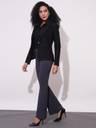Tailored for a polished look, this black workwear blazer jacket features a notch lapel and long sleeves, ideal for formal settings. The curved hemline adds a touch of modernity, while the open-front design ensures a sophisticated yet comfortable fit. Made from a blend of rayon, polyester, and spandex, it offers subtle stretch for all-day wear. With two practical pockets, it’s perfect for pairing with trousers or pencil skirts for a professional ensemble.