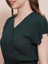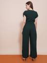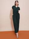 Embrace effortless style with this green jumpsuit, crafted from crinkle viscose for a comfortable fit. The wrap neck and cap sleeves add a touch of elegance, while the waist tie-up ensures a flattering silhouette. With wide legs and a concealed zip closure, it's perfect for casual outings. Two pockets add functionality to this chic design.