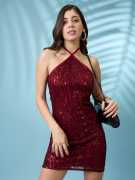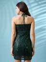 Shine bright in this green sequin mini dress designed to steal the spotlight. The halter neck with a tie-back detail adds a playful touch, while the bodycon fit highlights your silhouette. Perfect for cocktail parties, holiday nights, or special events, this fully lined dress ensures you sparkle in comfort. Pair with bold earrings and high heels to complete the party look