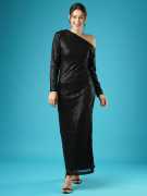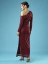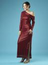 Embrace sophistication in the Globus Women Maroon Sequinned Stripes One Shoulder Long Sleeves Side Slit Sheath Maxi Party Dress. With its sequinned stripes and elegant one-shoulder silhouette, this dress is a standout choice. The long sleeves and side slit offer a touch of allure, making it ideal for party occasions and evening soirées.