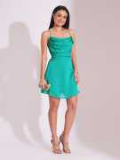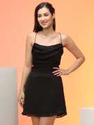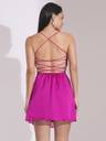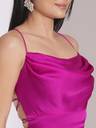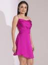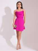 Make a bold statement with this fuchsia fit-and-flare mini dress from Globus. The cowl neck and strappy shoulder design create an elegant, flattering look, while the backless feature adds a touch of daring. Perfect for a night out, the solid crepe fabric enhances its sheen, and the mini length shows off your legs. The curved hem adds movement, while the zip closure at the back ensures a perfect fit. Hand wash for easy care