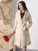 This beige trench coat is a classic winter essential, designed with a chic shawl collar and belted waist to accentuate your silhouette. Made from soft wool, it ensures warmth while maintaining a sleek, elegant look. The knee-length cut, button closure, and long sleeves offer timeless style and practicality. Finished with two pockets, it’s the perfect blend of comfort and sophistication for everyday layering.
