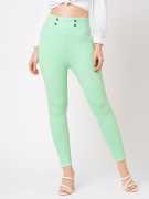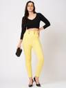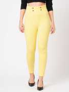 Globus offers wide range of Trendy & fashionable Bottomwear, to be worn as smart casuals & be Stylish. This lime yellow skinny well fitted tregging is in a super stretch 4 - Way Stretch fabric.its has panels at both sides of the waistband ends, it also has domeshaped gunmetal finish buttons for the style statement, Its a slip on Tregging , that can be worn as both semi formal & smart casual with a solid or printed top, or can be worn in a semi formal attire teamed with a well fitted classic shirt with or without a jacket. so go for it & make a stylish statement.