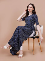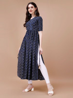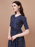 Glomee Women Bandhani Flared Kurta (Dark Blue)