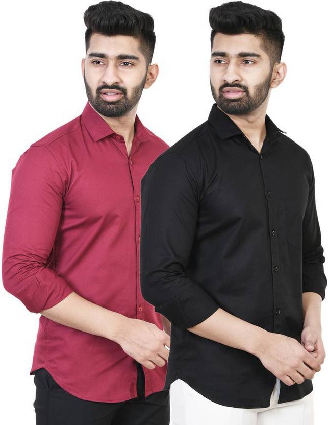 BLUE MARTIN Men Regular Fit Solid Spread Collar Casual Shirt (Pack of 2)