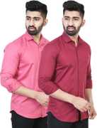 GLOREN Men Solid Casual Pink Shirt (Pack of 2)