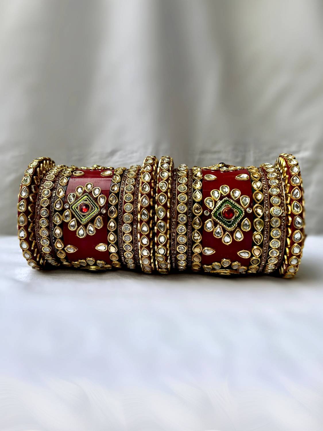 1 Pair (Set of 2) Red Color Kundan Work Bangles, Premium Gift Box / Jewelry Box for safe storage and gifting