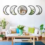 | Other Features | - 5 Pieces Moon Phase Acrylic Mirror Set for Wall Decoration, Home, Office, Restaurant, Bar…, Moon Phases Mirror Sets made of acrylic and Pine Wood, Its not have the same imaging effect of mirror, they just become decorations to increase more beauty and energy for your life. Please remove the protective film of the mirror when you fix them on the wall., Easy To Install - Paste them on the smooth wall with 3M stickers such as plastic surface, smooth wallpaper, smooth glass, wooden surface, ceramic tile surface, metal surface, latex paint wall surface; do not use on the powder coated wall surface., Its all about making your walls attractive... Quality of this product is literally very nice... Try something new and Make your wall more beautiful., Great gift to friends, family, and loved ones., Due to its 3D, Bright, Reflective and Aging Resistant 2mm thickness acrylic material, it has a more high grade mirror effect, and much longer service life, compared with traditional vinyl wall decal.
