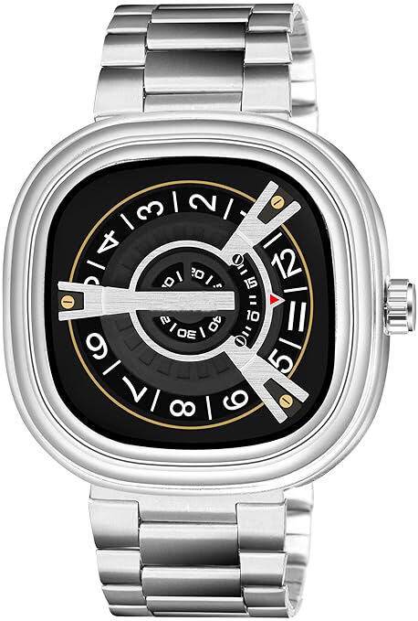 Add a bold and contemporary touch to your wrist with this FENIX Analog Watch for men. Crafted with a robust silver stainless steel strap and a square-shaped 47mm case, this watch features a multi-layered black dial with an innovative layout and designer-style hands for a premium look. The timepiece combines modern aesthetics with durable craftsmanship, making it a perfect accessory for casual, formal, or party wear.