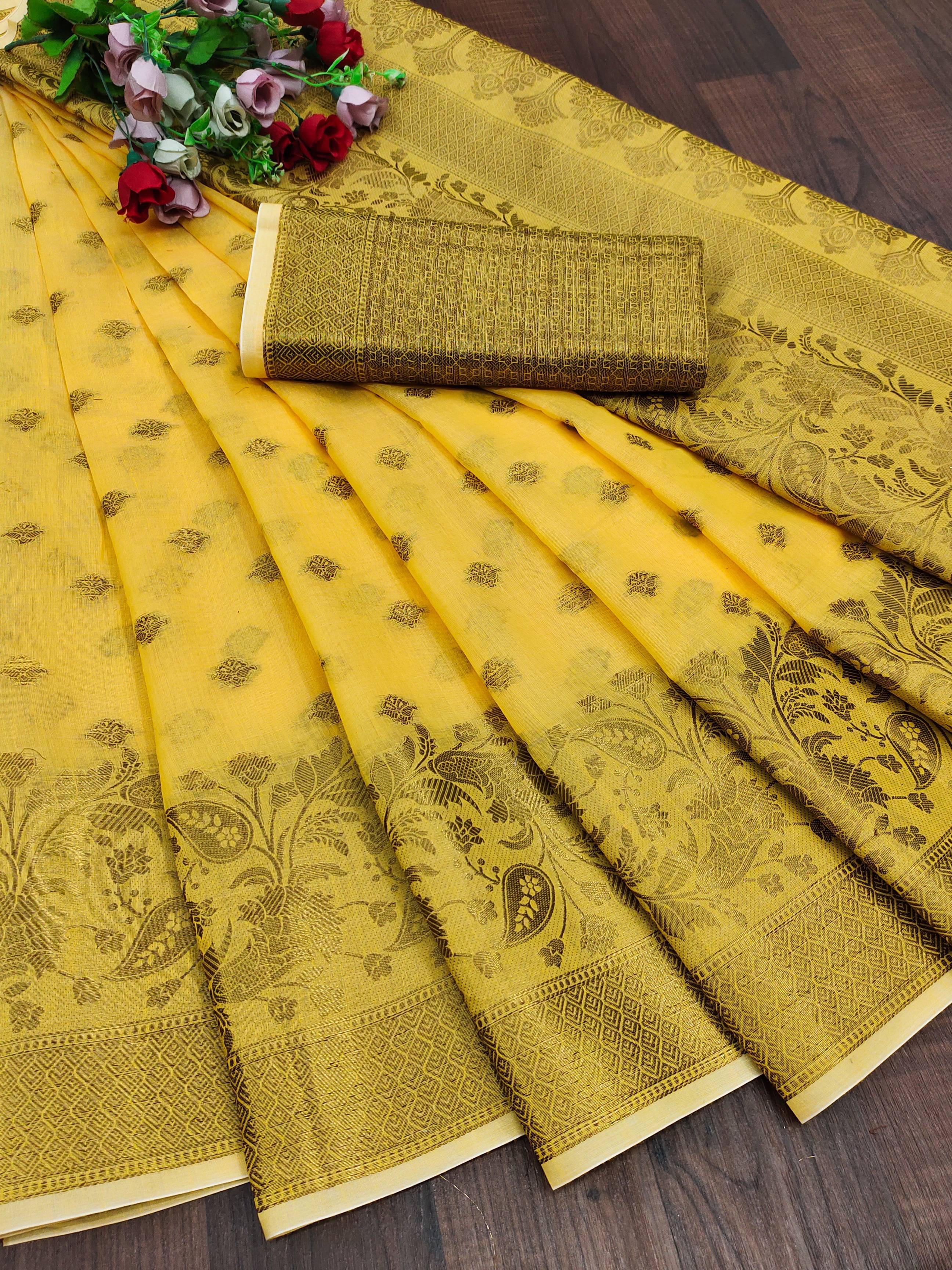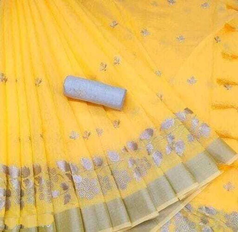 GLOWMOROUS Self Design Ikkat Chanderi Saree (Yellow)