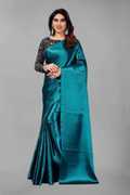Transform your wardrobe into something special with the Pradeep Fashion Solid Bollywood Silk Blend Satin Saree! The satin gives you a soft feel against the skin and allows for an elegant drape. With its vibrant color and unique look, this saree will make you stand out from the crowd